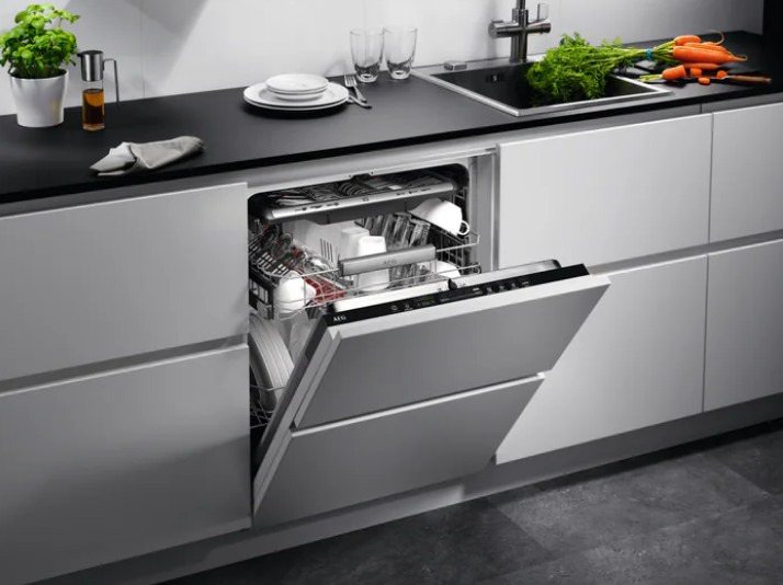 Встраиваемая посудомоечная машина AEG FSK93718P — это высококачественная итальянская техника, которая сочетает в себе стильный дизайн и передовые технологии. Габариты устройства составляют 81.8 см в высоту, 59.6 см в ширину и 55 см в глубину, что позволяет вместить до 15 комплектов посуды. Всё это делает её идеальным решением для больших семей или тех, кто любит устраивать большие вечеринки. Модель оснащена семью программами мытья, включая быструю (30 и 60 минут), стандартную (160 и 90 минут) и автоматическую. Такое разнообразие программ позволяет выбрать наиболее подходящий режим в зависимости от степени загрязнения посуды и доступного времени. Также присутствует функция самоочистки, что обеспечивает долгую и надёжную работу устройства. Система сушки AirDry Technology обеспечивает эффективное и нежное сушение посуды, исключая появление разводов и пятен. Устройство оснащено таймером отсрочки запуска от 1 до 24 часов, что позволяет запланировать работу машины на удобное для вас время. Материал рабочей камеры — нержавеющая сталь, что гарантирует долговечность и устойчивость к коррозии. Внутреннее освещение LED обеспечивает удобство использования в любое время суток. Управление машиной осуществляется с помощью сенсорной панели и жидкокристаллического дисплея. Модель оснащена функцией QuickSelect, которая позволяет быстро и легко выбрать нужную программу. Также есть индикаторы наличия ополаскивателя и соли, что облегчает уход за устройством. Дополнительные функции ExtraPower и GlassCare обеспечивают бережное и эффективное мытьё даже самой загрязнённой посуды и стеклянных изделий. Модель оснащена датчиком чистоты воды SensorLogic, который контролирует качество воды и, при необходимости, автоматически корректирует параметры мытья. Нижний разбрызгиватель ProClean обеспечивает равномерное распределение воды по всей рабочей камере. Зона интенсивного мытья Spray Zone позволяет эффективно очистить даже самую загрязнённую посуду. Корзины Premium и третья корзина для столовых приборов MaxiFlex обеспечивают удобство размещения посуды различных форм и размеров. Уровень шума составляет всего 39 дБ, что делает работу машины практически незаметной. Защита от протечек AquaControl обеспечивает безопасность эксплуатации.