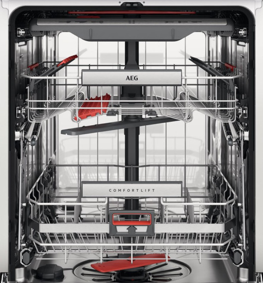 Встраиваемая посудомоечная машина AEG FSK94858P имеет стильный итальянский дизайн. Компактная полноразмерная конструкция сохраняет привычные габариты для кухни: высота 81.8 см, ширина 59.6 см, глубина 56 см, при этом ниша для установки требует пространства 82—90×60×56 см, что обеспечивает универсальность монтажа. Панель управления выделена строгим черным цветом сенсорной поверхности, дополненной жидкокристаллическим дисплеем для интуитивной навигации и точной настройки параметров. Внешний вид прибору придает минимализм, а автоматическое открывание двери добавляет функциональную нотку, облегчая доступ к загрузке посуды и завершению цикла без лишних движений. Внутренняя камера выполнена из нержавеющей стали — устойчивой к коррозии и обеспечивающей длительную службу при интенсивной эксплуатации. Корзины премиум-класса спроектированы для максимальной гибкости: ComfortLift поднимает нижнюю секцию на удобную высоту, облегчая работу с крупной посудой, а третья лоток MaxiFlex предназначен для столовых приборов, распределяя их по удобным секциям и предотвращая скопление. Вместимость до 14 комплектов делает устройство подходящим для семейных ужинов и приема гостей, сохраняя порядок и экономию пространства внутри. Технологическая начинка ориентирована на экономию ресурсов и заботу о деликатных поверхностях. Система AirDry использует естественную циркуляцию воздуха для эффективного высушивания без перегрева, обеспечивая класс сушки A. Для защиты стеклянной посуды предусмотрен режим GlassCare, снижающий риск появления пятен и царапин. Контроль качества мойки реализован через SensorLogic — датчик чистоты воды, который мониторит степень загрязнения и адаптирует цикл для оптимальной эффективности. Режимы ExtraPower и ExtraSilent дают возможность выбирать приоритет: усиленное воздействие на стойкие загрязнения или бесшумное выполнение задач на уровне 39 дБ, что делает работу практически незаметной в домашней обстановке. Управление сочетает удобство и современные возможности: сенсорная панель с ЖК-информером, QuickSelect для быстрого выбора оптимальной программы, а также Wi‑Fi модуль для дистанционного контроля через приложение. Таймер отсрочки запуска варьируется от 1 до 24 часов, позволяя планировать цикл под график пользователя; индикация оставшегося времени и выбранной программы видна как на дисплее, так и через луч-индикацию на полу с указанием оставшихся минут. Индикаторы наличия ополаскивателя и соли предупреждают о необходимости пополнения расходных материалов. Ассортимент программ включает 7 вариантов, а температурных режимов — 4, что покрывает все типичные сценарии: быстрый цикл 30 или 60 минут для легкого сервиса, стандартный вариант на 90 или 160 минут для более тщательной обработки, а также автоматический режим, который сам подбирает параметры по степени загрязнения. Безопасность и удобство требуют отдельного внимания: система AquaControl защищает от протечек, минимизируя риск повреждений пола и мебели. Самоочистка облегчает уход за внутренними элементами, продлевая срок службы и сохраняя высокую эффективность. Электронный блок управления гарантирует точность операций и плавное взаимодействие с отдельно предусмотренными опциями, а дизайн панели делает интерфейс понятным и доступным даже при минимальном опыте работы с техникой.