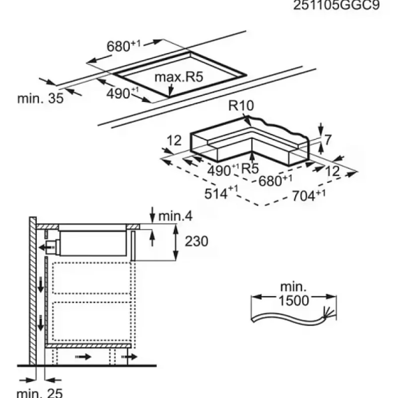 | Габариты ниши (ШхГхВ) | 680x490х225 мм |