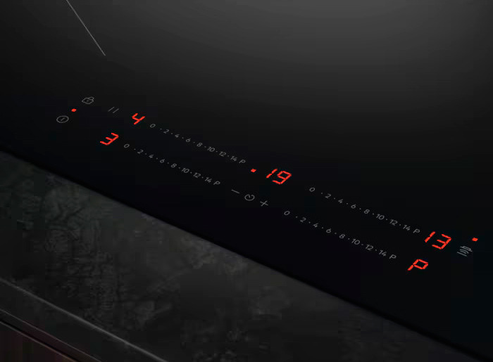 Варочная панель AEG TO64IC00FB обладает дизайном, в котором объединены в тонком корпусе с чёрной стеклокерамической поверхностью и скошенным краем, который визуально облегчает кухонную зону и подчёркивает современный интерьер. Низкий профиль высотой 4.4 см делает изделие почти невидимым в рабочем пространстве, а аккуратная отделка гарантирует гармонию с другим встраиваемым оборудованием. Чёрный цвет поверхности сочетается с цифровым индикатором и сенсорными элементами управления, создавая стильный, но практичный модуль, легко вписывающийся в разные стили — от лофта до хай-тек. Материал рабочей зоны — устойчивая к нагрузкам стеклокерамика, простая в уходе и лишённая выступающих деталей, что снижает риск механических повреждений и облегчает мытьё. Управление реализовано электронно через чувствительные сенсорные панели с цифровым дисплеем, который наглядно отображает мощность и настройки таймера. Таймер включает режим Eco, звуковой сигнал и опцию с автоматическим отключением, помогающие экономить ресурсы и предотвращать перегрев. Есть индикаторы остаточного тепла OptiHeat, информирующие об остывших зонах для безопасного обслуживания поверхности. Функция Stop&Go мгновенно переводит все активные секции в режим паузы, сохраняя выбранные параметры — удобно при прерванной готовке. Режим повышенной мощности PowerBoost и система Automax обеспечивают быстрый и автоматический разогрев до максимальных режимов без ручной подстройки, что особенно полезно при кипячении воды или обжаривании. Интеллектуальные решения повышают комфорт и безопасность: автоматическое определение наличия и диаметра посуды оптимизирует распределение энергии по конфоркам, а функция Hob2Hood интегрирует панель с вытяжкой для автоматического управления интенсивностью оттока, создавая единый умный цикл приготовления.