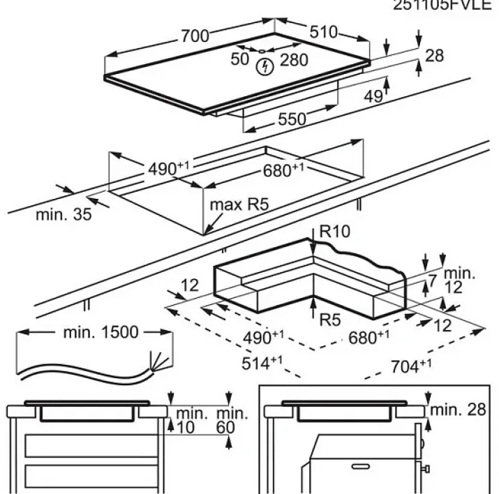 | Габариты ниши (ВхШхГ) | 28х680x490 мм |