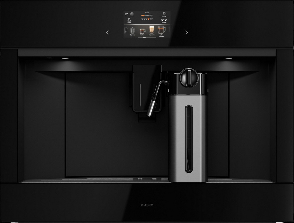 Встраиваемая кофемашина ASKO CMB54BG имеет строгий минималистичный облик: фасад выполнен из черного стекла, аккуратно вписывается в мебельный ряд серии CRAFT и подчёркивает современный интерьер. Компактные габариты 45.5×59.5×40.5 см и ниша 45×56×55 см позволяют разместить агрегат в стандартном кухонном модуле, а масса 24.2 кг обеспечивает устойчивость при работе. Два автономных нагревательных контурa гарантируют быстрый доступ к пару и горячей воде без ожидания между режимами, а давление 15 бар обеспечивает стабильное экстрагирование эспрессо и двойного эспрессо. Сенсорное управление с TFT-дисплеем делает настройку интуитивной: выбирайте крепость, одну из четырех температур, одну из тринадцати степеней помола и сохраняйте до шести пользовательских профилей с собственными рецептами. Автоматический капучинатор разборный, контейнер из нержавеющей стали объёмом 500 мл обеспечивает качественное вспенивание и автоматическую очистку от молочных отложений, предусмотрена программа очистки контейнера для молока. Ёмкость бункера для зерен 350 г и резервуар для воды 2.4 л поддерживают длительную автономную работу, а наличие отдельного отсека для молотого кофе добавляет гибкости. Функции латте, латте макиато, капучино, эспрессо макиато, лунго и горячая вода расширяют меню, а предвари Поддержка режима ожидания.Панель управления сенсорная, а TFT-дисплей отображает наглядные подсказки при выборе порции, температурной группы и способа вспенивания. Конструкция предусматривает телескопические направляющие для удобного наполнения бункера, отдельные контейнеры под зерна, молотый кофе, воду и молоко; материал молочного резервуара — нержавеющая сталь. Для поддержания чистоты предусмотрены индикация загрязнения, автоматическая программа очистки от накипи и программа промывки молочного отсека, что сокращает вмешательство пользователя и продлевает срок службы. Встроенная полка для подогрева чашек, подсветка зоны приготовления и отделение для хранения аксессуаров создают комфорт при ежедневном использовании. Модель оснащена автоматическим разборным капучинатором, что облегчает обслуживание и упрощает гигиеническую обработку после приготовления молочных напитков.