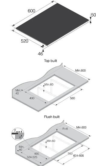 Монтажные размеры ниши (Ш × Г): 56 × 49 см.