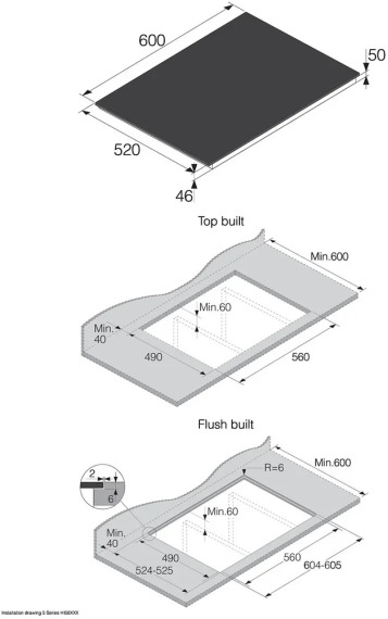 Монтажные размеры ниши (Ш × Г): 56 × 49 см.