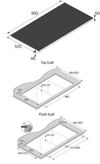 Монтажные размеры ниши (Ш × Г): 86 × 49 см.