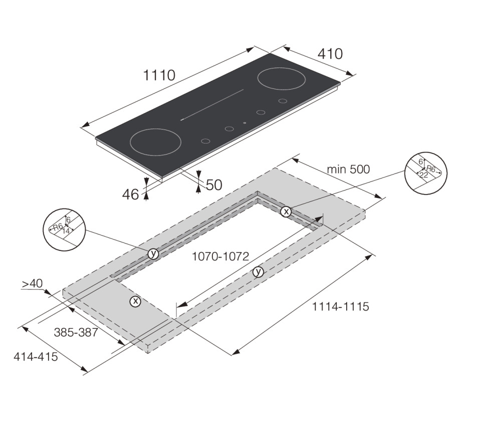 Монтаж вровень со столешницей: панель встраивается без выступа, что облегчает уход и придаёт кухне современный вид.