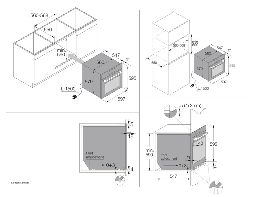 Боковые профили: для бесшовного монтажа в кухонный гарнитур.
