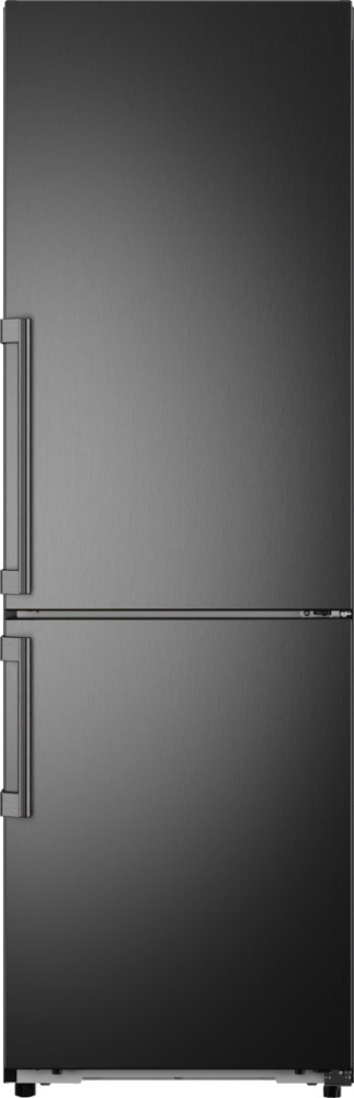 Отдельностоящий двухкамерный холодильник премиум‑класса (серия 5) в чёрном цвете. Морозильная камера расположена снизу. Производится в Сербии. Гарантия — 24 месяца.