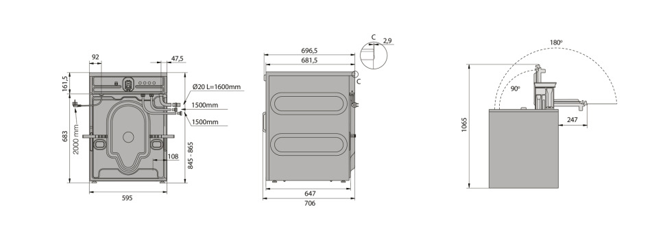 Габариты (В × Ш × Г): 85 × 59,5 × 70,6 см;