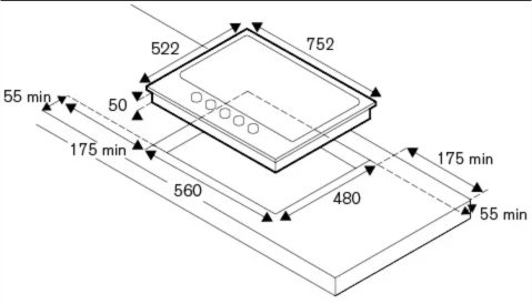 Мощность конфорок: правая передняя - 0,48..1кВт, правая задняя 1,05..3кВт, левая передняя 0,6..1,75кВт, левая задняя 0,6..1,75кВт, WOK - 0,48..4кВт. Газ-контроль, электроподжиг одной рукой, чугунные решётки, вес панели 18кг