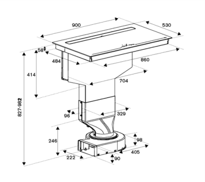 4 зоны приготовления, Мультислайдерное управление 4х, 9 уровней мощности, Booster. 2 зоны Bridge, Блокировка, память последних установок, пауза/возврат настроек, ,обратный отсчёт времени , блокировка, индикация остаточного тепла, автоматическое выключение, вес прибора 39,6кг
