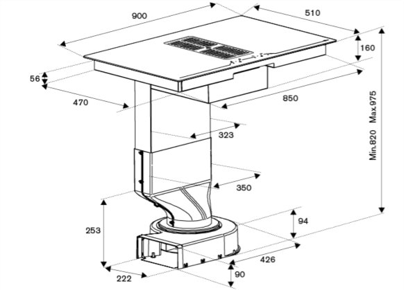 4 зоны приготовления, Мультислайдерное управление 4х, 9 уровней мощности, Booster. 2 зоны Bridge, Блокировка, память последних установок, пауза/возврат настроек, ,обратный отсчёт времени , блокировка, индикация остаточного тепла, автоматическое выключение, вес прибора 39,6кг