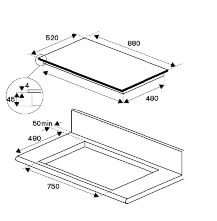 Слайдерное управление, 14 уровней мощности, Flex moving, Booster, Double Booster, таймер, пауза Stop&Go, функция подогрева Keep Warm, автоматическое приготовление, перенос настроек, функции "Шеф", "Гриль", обратный отсчёт времени, индикация остаточного тепла, автоматическое выключение, вес панели 15кг