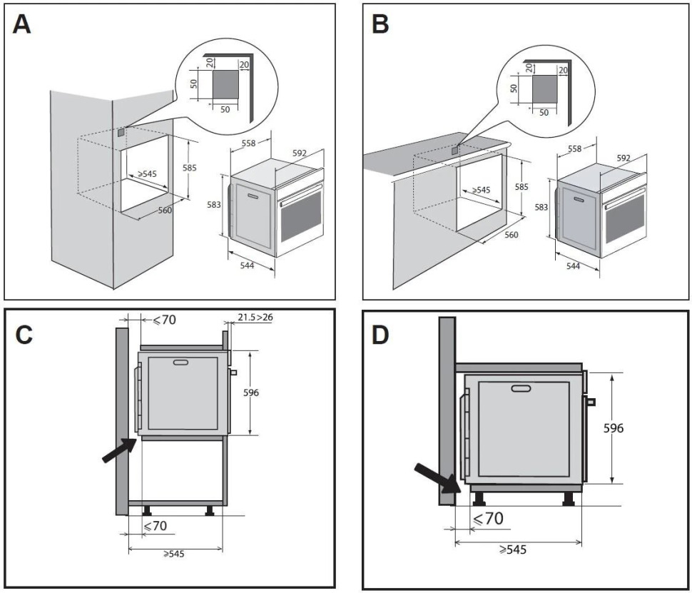 Класс энергопотребления — A+; энергопотребление: 0,7 кВт·ч в режиме духового шкафа, 1,1 кВт·ч в режиме конвекции. Габариты (В × Ш × Г): 59,2 × 59,2 × 56,5 см; габариты ниши для встраивания: 58,5 × 56 × 54,5 см. Вес нетто — 38,7 кг. Производство — Франция. Гарантия — 12 месяцев.