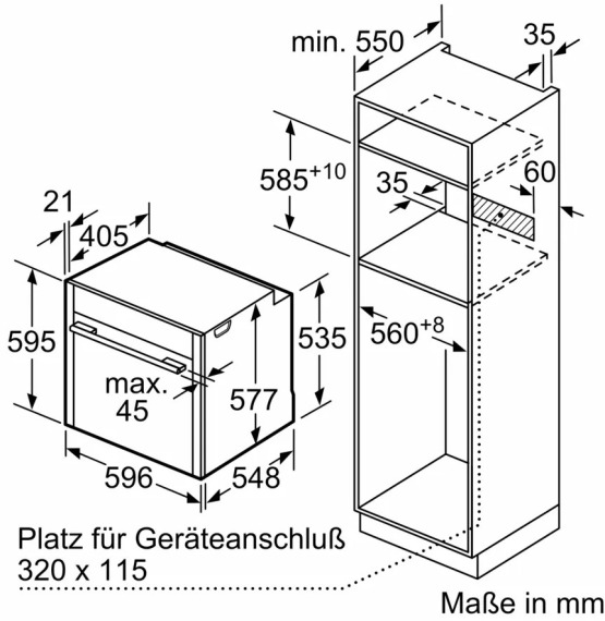 Габариты ниши для встраивания: 585–595×560–568×550 мм.