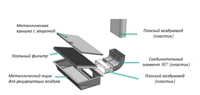 Используется в режиме рециркуляции, когда невозможно или нецелесообразно подключать вытяжку к вентиляционному каналу.