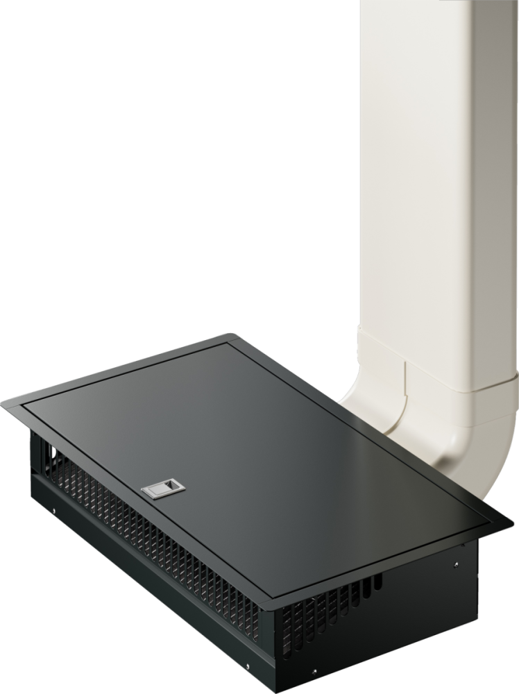 Проходит через угольный фильтр, где очищается от жира, запахов и загрязнителей.