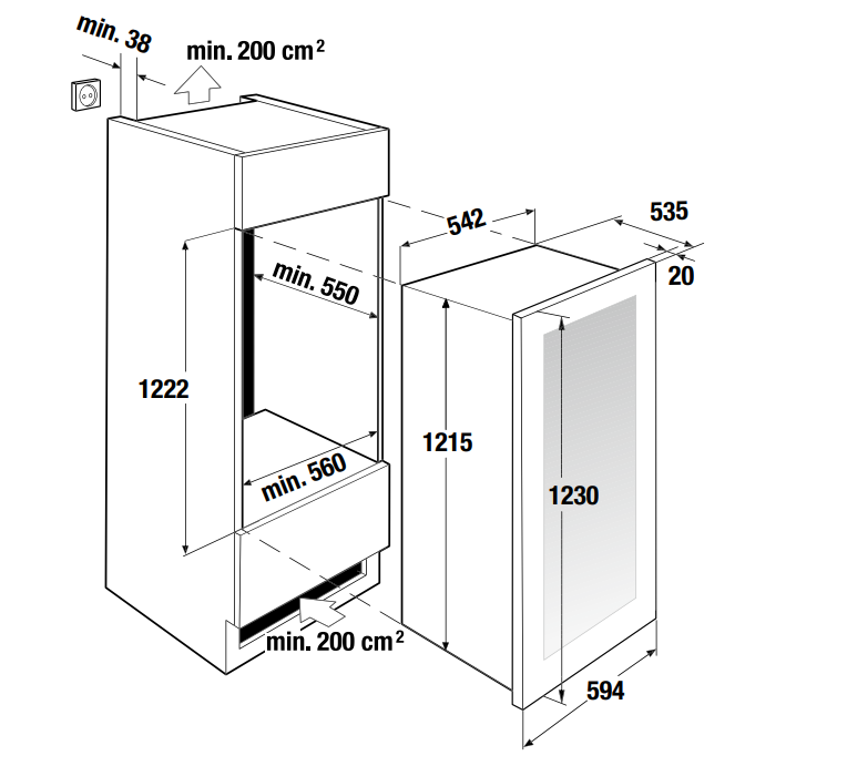 Модель имеет две температурные зоны, в которых одновременно можно хранить разные сорта алкоголя и выставлять разные сочетания настроек. Он встраивается в нишу, что удобно, если у вас ограничен метраж помещения. Количество бутылок, которое можно разместить с учетом полной Комплектация и из расчета объема бутылки 0,75 л, — 79 шт.