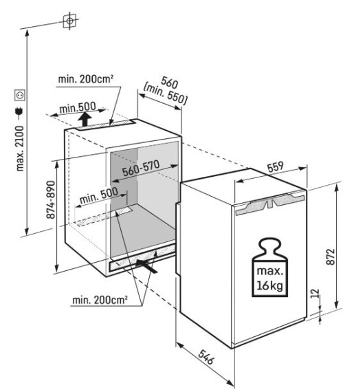 Объем ниши (ВхШхГ): 87,4–89 × 56–57 × 55 см.