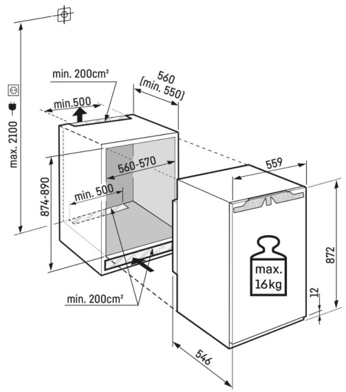 Тип: Встраиваемый однокамерный холодильник.
