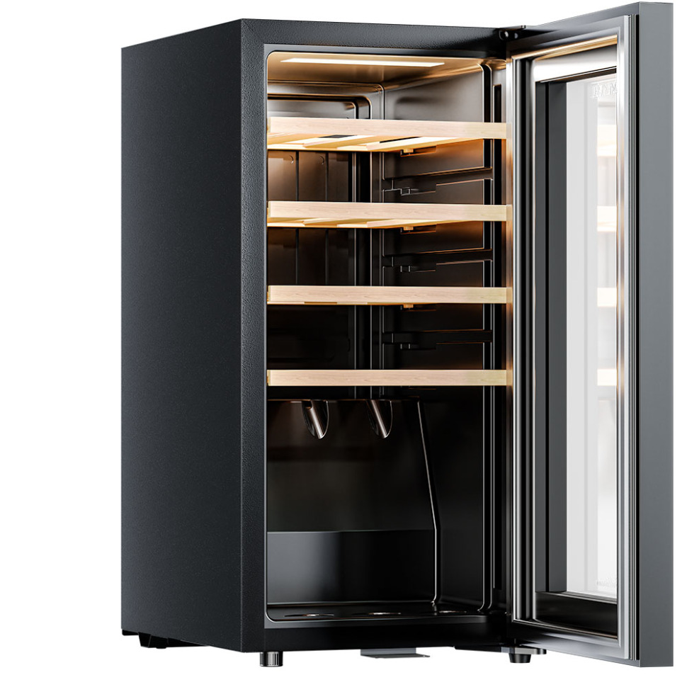 15 бутылок вина. Поддерживает температуру +5…+20 °C,