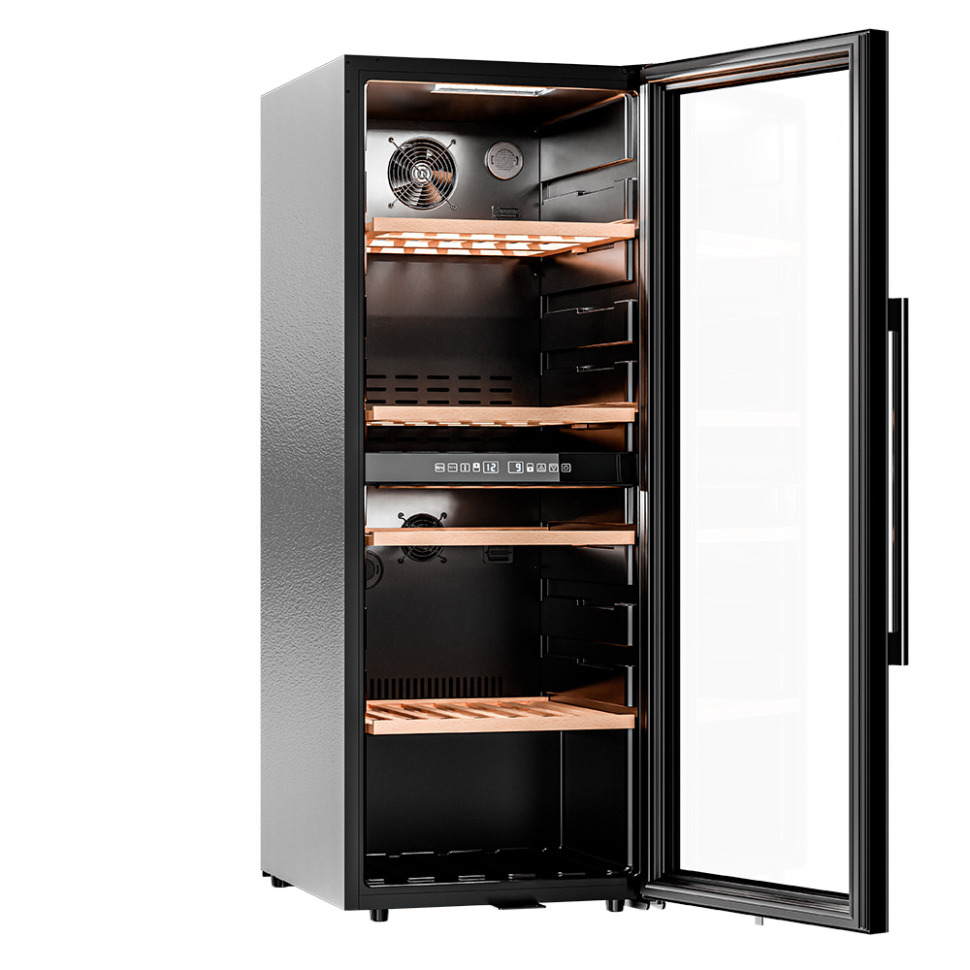 Вмещает до 105 бутылок (0,75 л). Поддерживает
