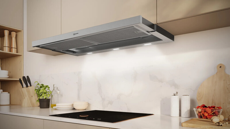 Вытяжка Neff D49ML54X1 — это современное решение для эффективной вентиляции кухонного пространства, выполненное в стильном дизайне High-Tech из нержавеющей стали.
