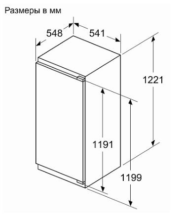 Тип: встраиваемый холодильник с морозильником.