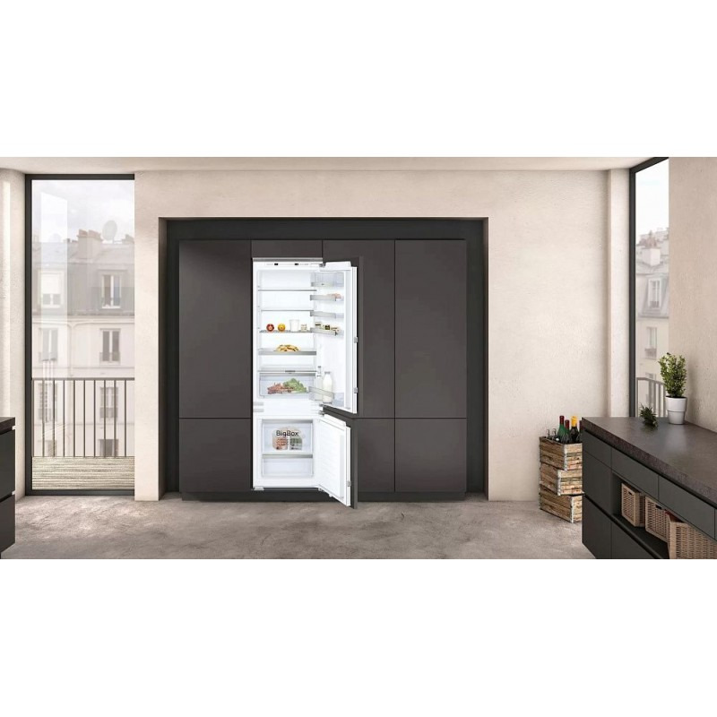 Встраиваемый холодильник Neff KI6873FE0 имеет два отделения: холодильное и морозильное, температуру которых можно регулировать при помощи интуитивно-понятной сенсорной панели управления.