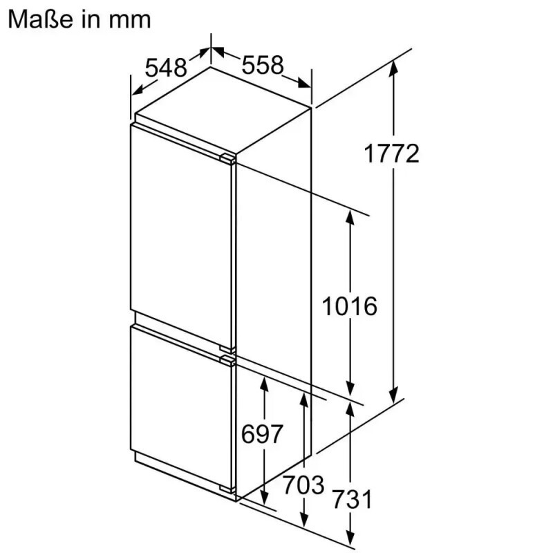 Тип: встраиваемая холодильно‑морозильная комбинация.