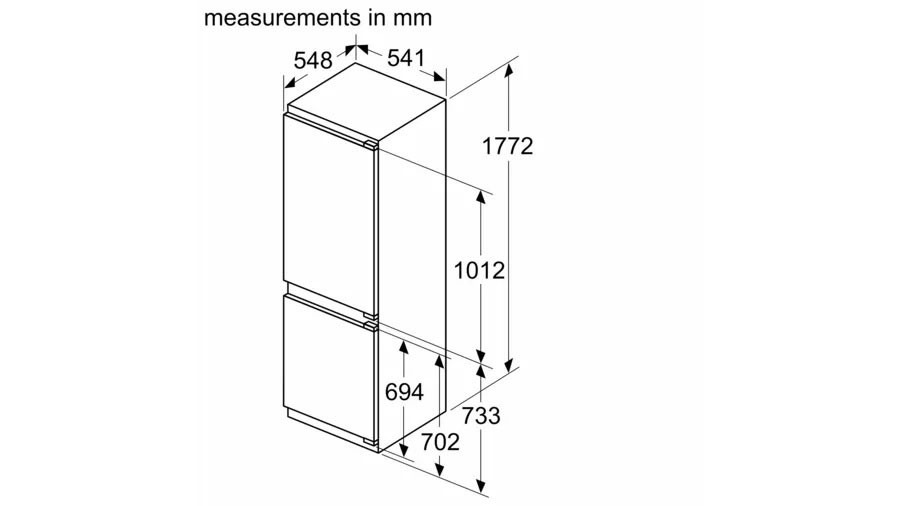 Тип: встраиваемый холодильник с морозильником.