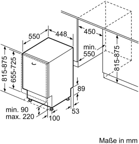 Ниша для встраивания (В × Ш × Г): 81,5–87,5 × 45 × 55 см.
