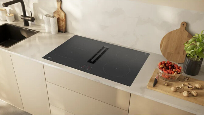 Комбинированная панель Neff V58NBS1L0 представляет собой современное решение для кухни, объединяющее варочную поверхность и встроенную вытяжку в едином стильном дизайне.