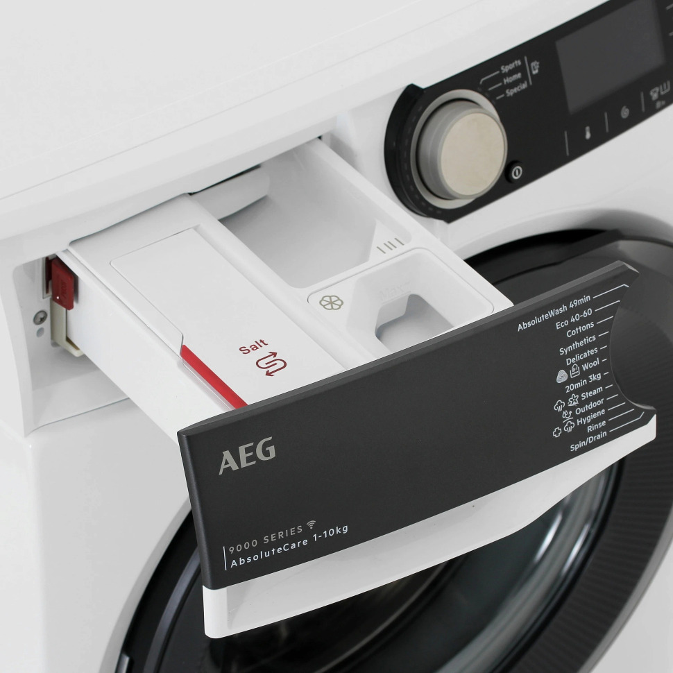 Стиральная машина AEG LFR95146SUE создаёт впечатление современности и надёжности: корпус белого цвета с контрастной чёрной панелью управления и люком придаёт интерьеру элегантность, а отделка из нержавеющей стали подчёркивает премиальный характер. Полноразмерный агрегат встраивается автономно и рассчитан на удобство эксплуатации при глубине 63.6 см, высоте 84.7 см и ширине 59.7 см. Барабан из нержавеющей стали вместит до 10 кг белья, а инверторный мотор обеспечивает мягкий, экономный и тихий режим работы благодаря Silent System Plus. Электронная панель с крупным LCD, поворотными сенсорными переключателями и широким набором функций упрощает выбор из двенадцати программ, включая хлопок и режим Eco при 40°/60°, синтетику, деликатные ткани и режим для шерсти с сертификатом Woolmark GREEN. Паровая обработка, антиаллергенная программа и опция быстрого цикла 20 минут расширяют уход за вещами, а контроль пенообразования, датчик веса и балансировка защищают служат дольше.