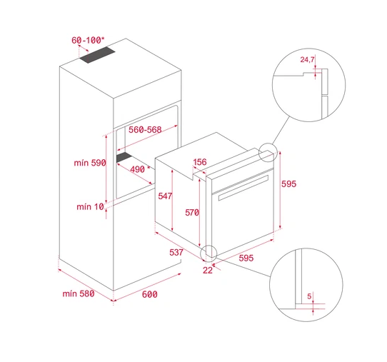 - Мультифункциональный духовой шкаф с утапливаемыми регуляторами