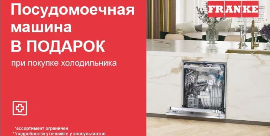 - При покупке любого холодильника или морозильника Franke покупатель получает в подарок посудомоечную машину Franke FDW 4510 E8P E